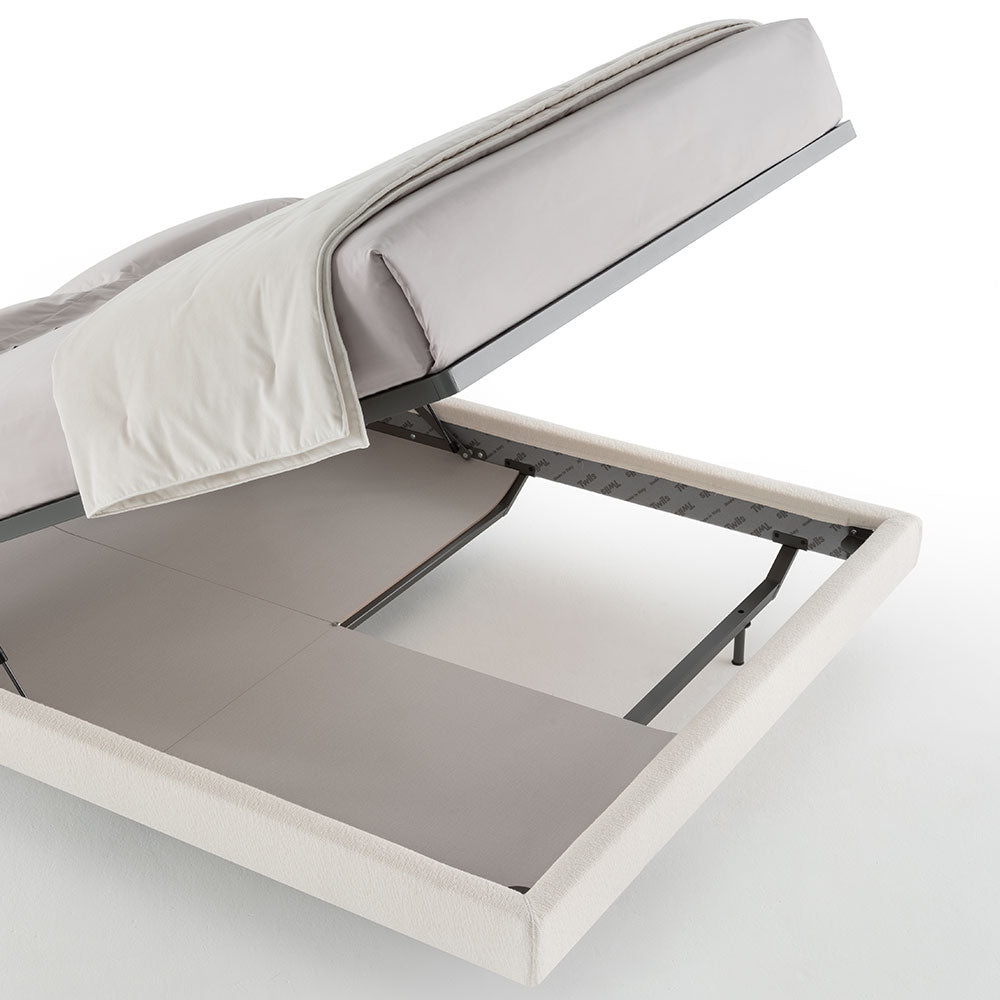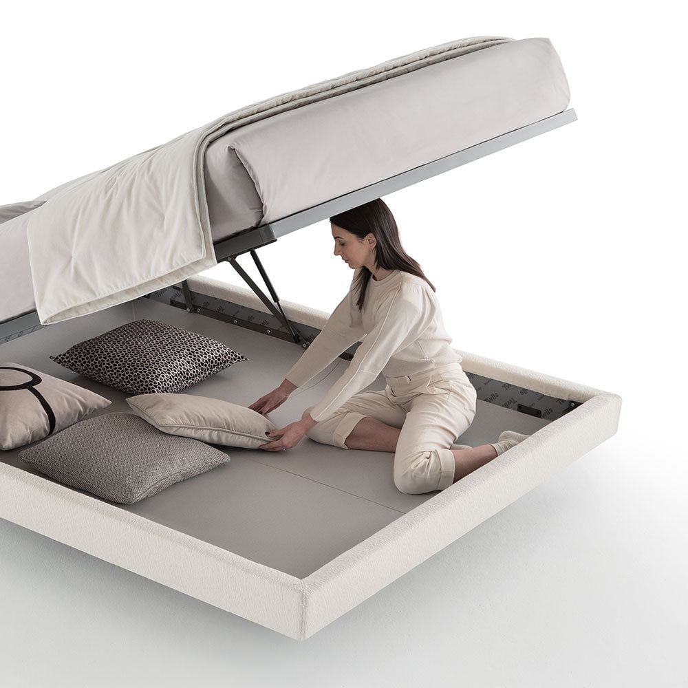 A-Box is an integrated storage container designed specifically for the Twils bed collection. A space-saving solution that enables the bed to "float", with a design that makes the feet disappear from view and offers 11 cm of clearance between the floor and the bed. Thanks to a specifically designed panel shape, the storage space under the mattress is surprisingly capacious and functional. This bed storage solution can be integrated into a wide range of Twils double beds, saving bedroom space whilst simultaneously offering elegance and functionality.