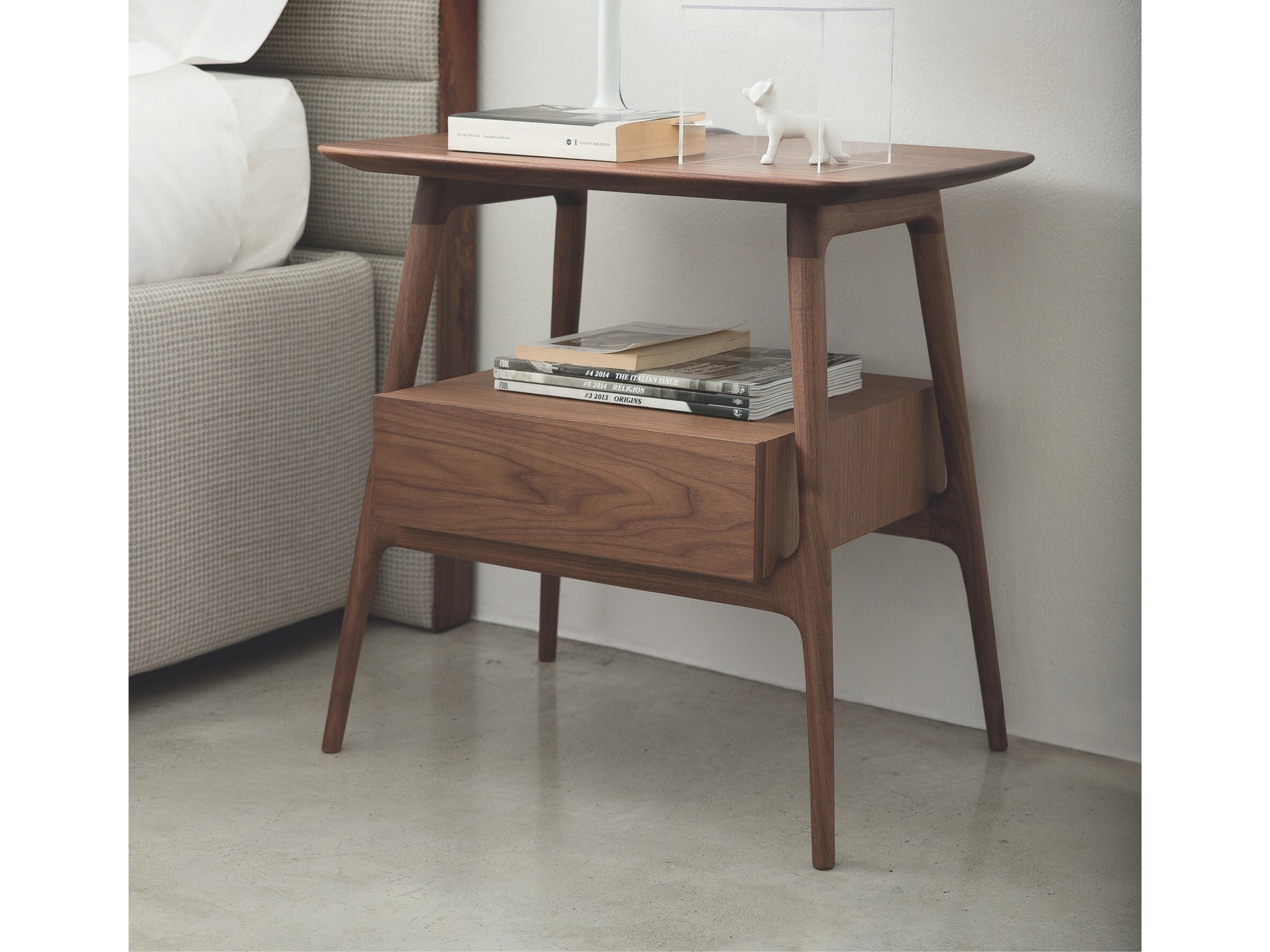 Designed by renowned designers Marconato and Zappa, the Bilot bedside table embodies refined minimalism through its gently curved silhouette and softened edges.