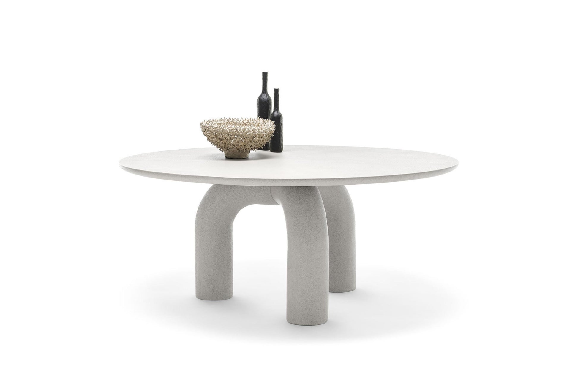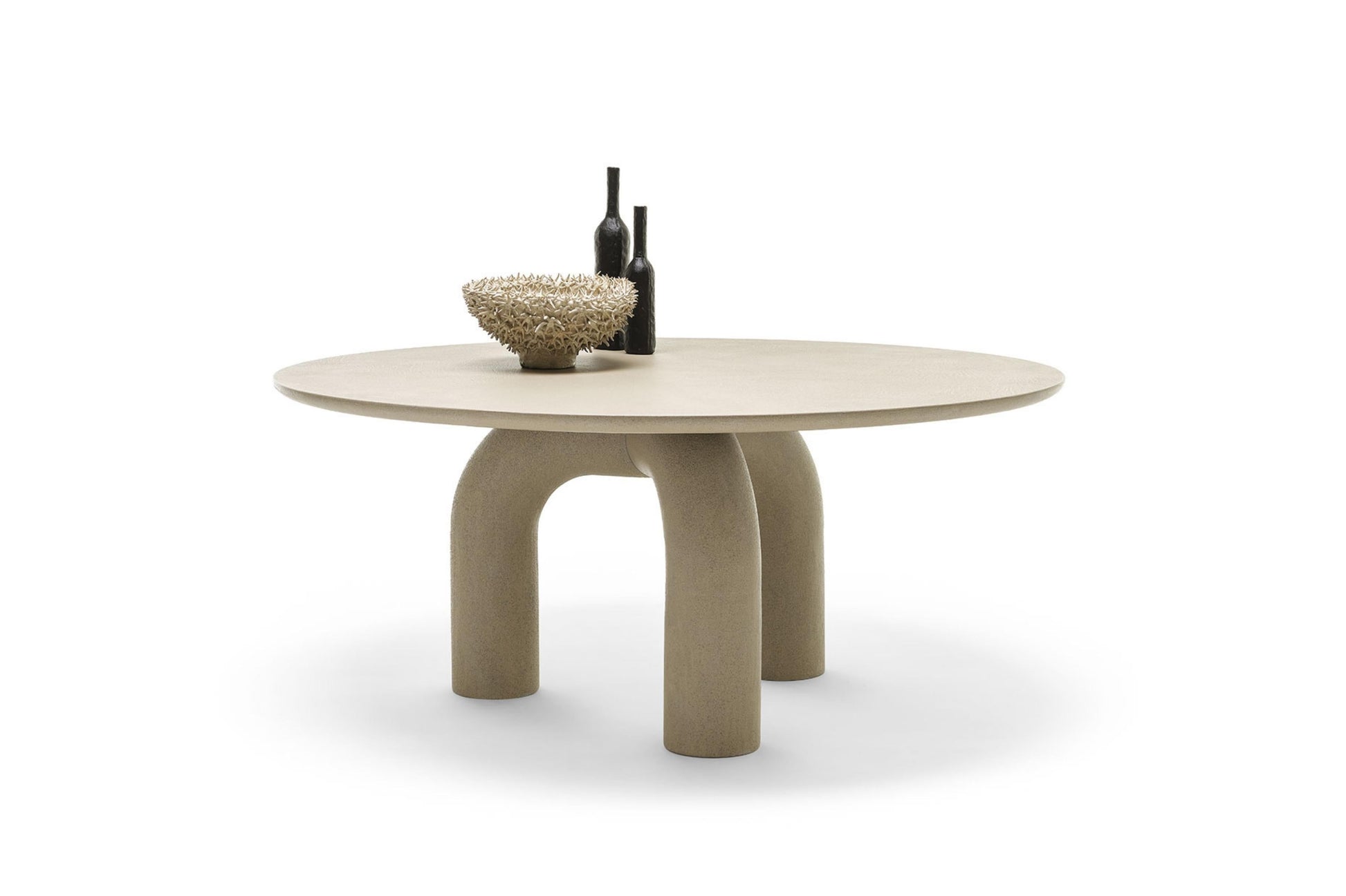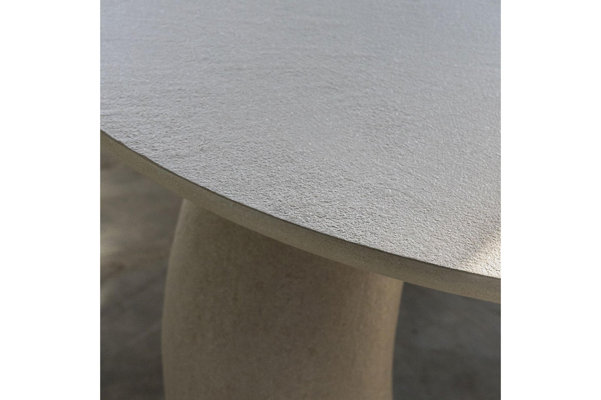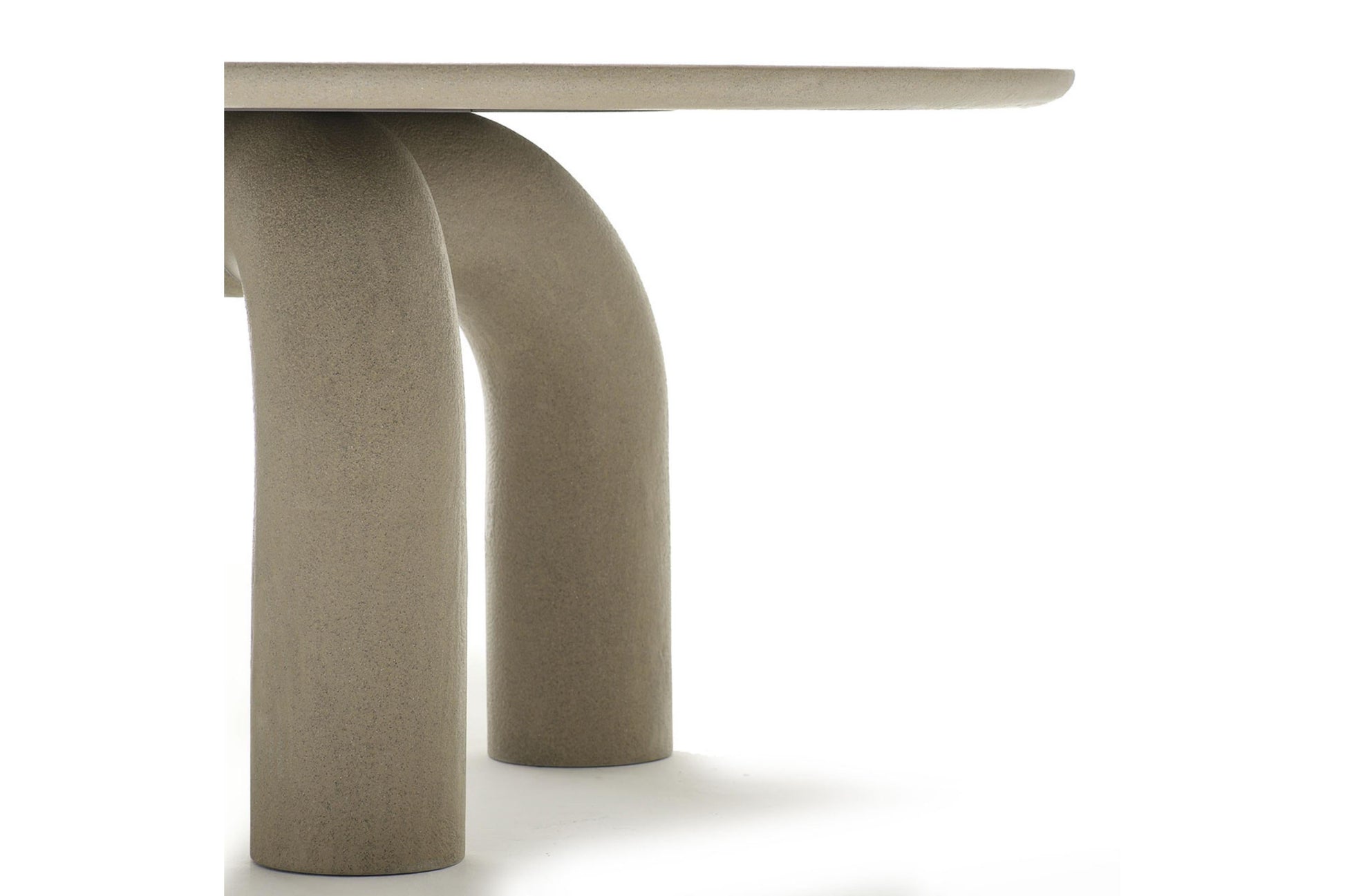 Dining table with a strong identity. Designed with a thickness that emphasises and imposes its presence, evoking an elegant stability. Monumental and poetic. The soft curves of the legs imbue a pure and exclusive refinement, allowing harmonious adaptation to different contexts, whether classic or contemporary.
