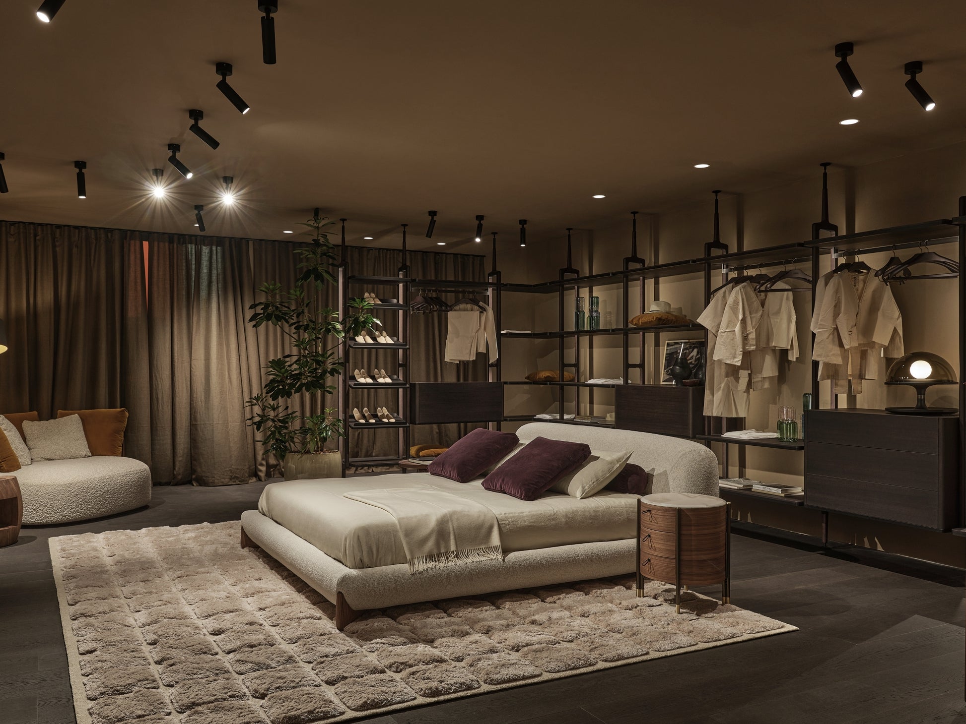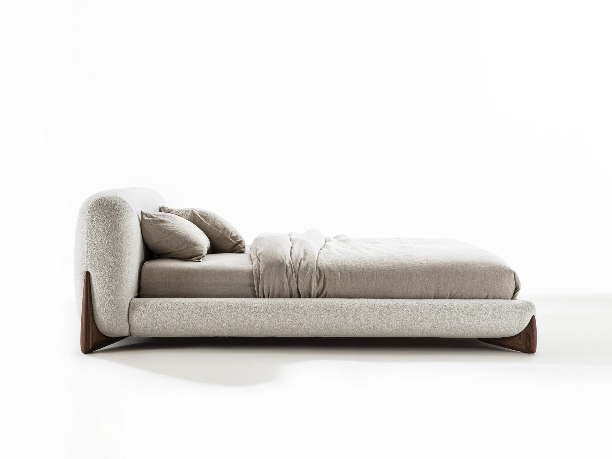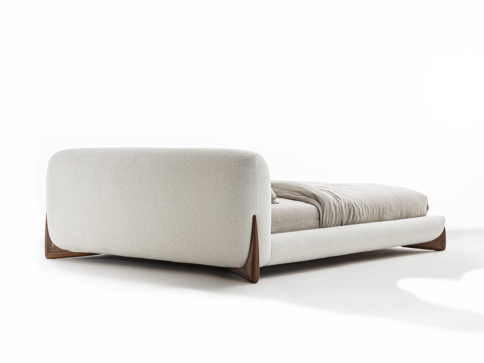 The bed is available in a wide selection of fabrics and leathers from the collection, making it versatile for different interior styles. Among them, the Bouclage fabric, a refined blend of cotton, linen, and wool, most beautifully enhances the design’s softness and sculptural presence.