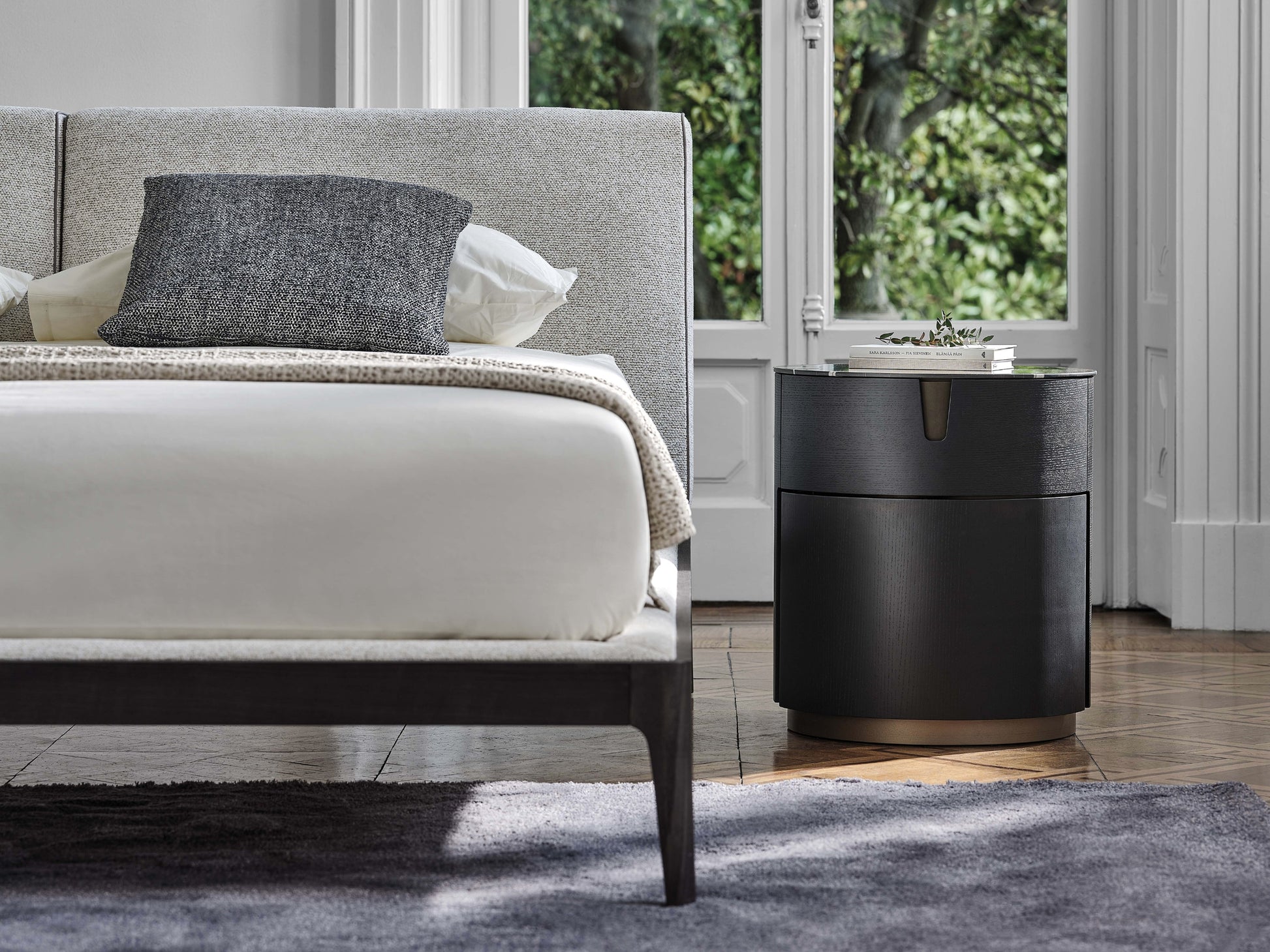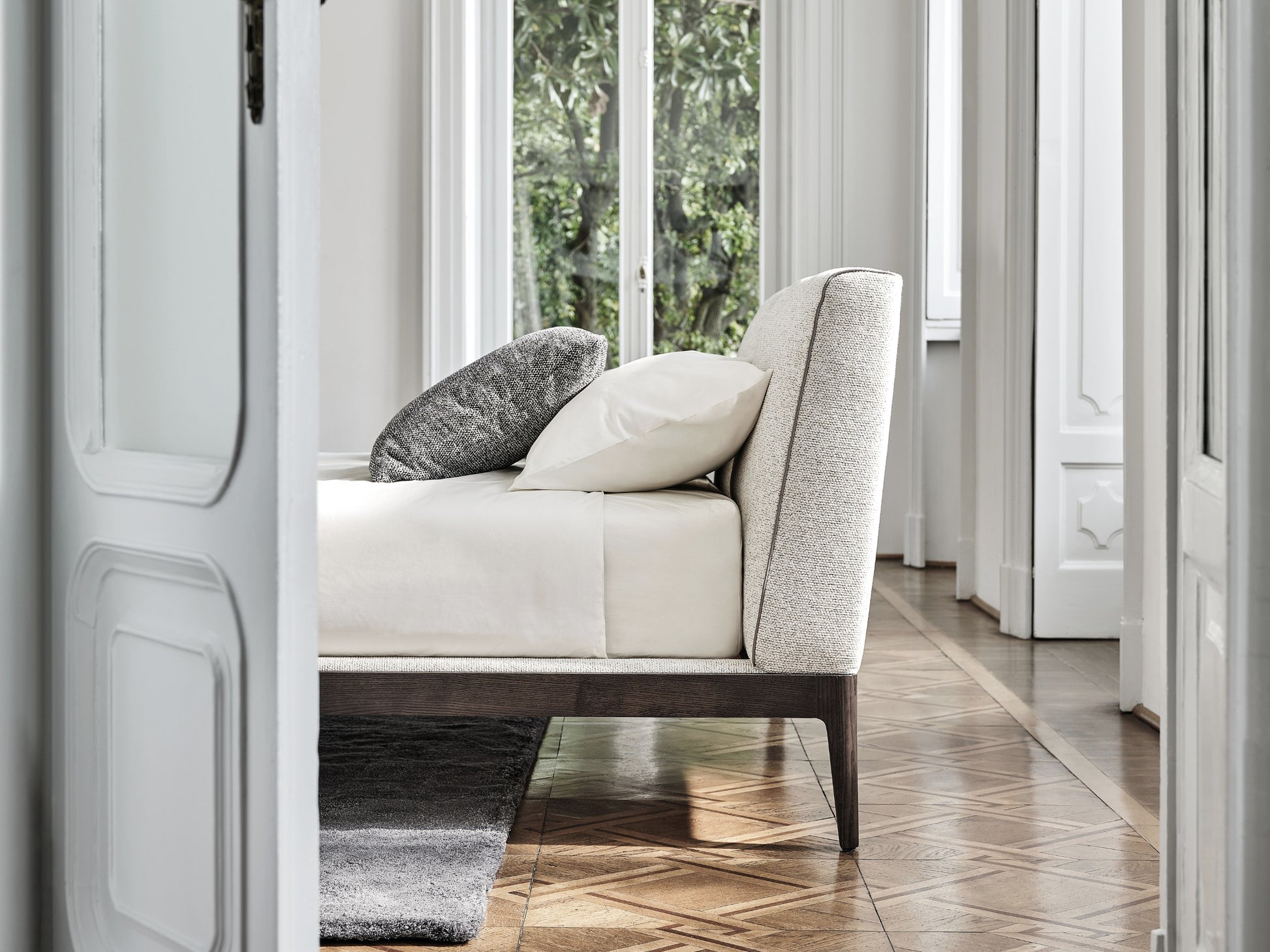 Its frame, available in ash or canaletta walnut, is lower than previous Ziggy Beds and it is designed to welcome thicker mattresses to meet the latest living needs. A soft headboard, divided into two separate sections, and an elegant piping, available in the colours of the Zenith collection, complete the bed’s design. Perfectly balanced in form and function, it enhances the style of any contemporary bedroom.